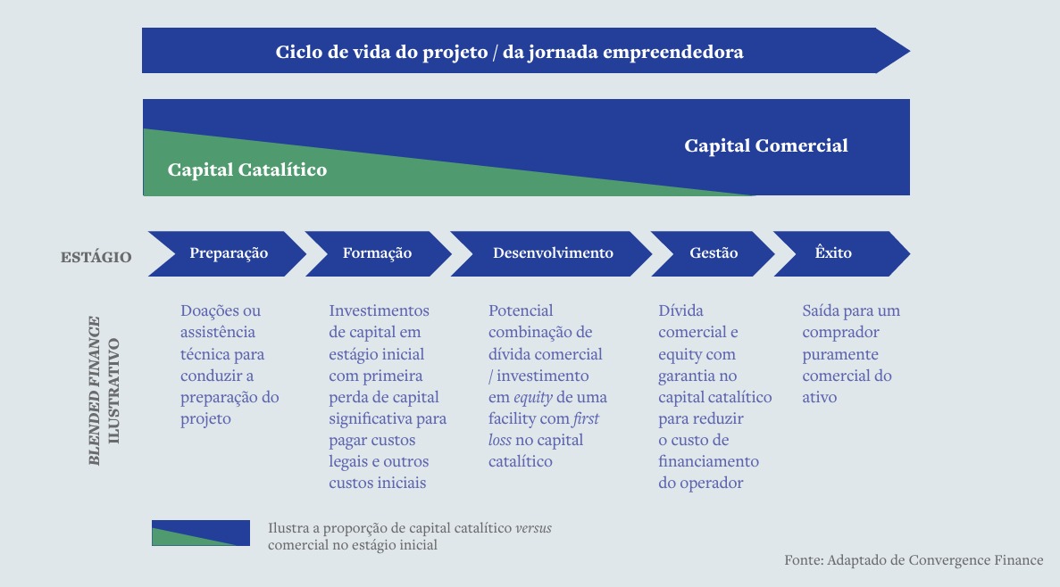 • Alavancagem de recursos: o capital público, de fomento e/ou filantrópico atua como catalisador, atraindo investimentos privados e ampliando o impacto dos projetos.