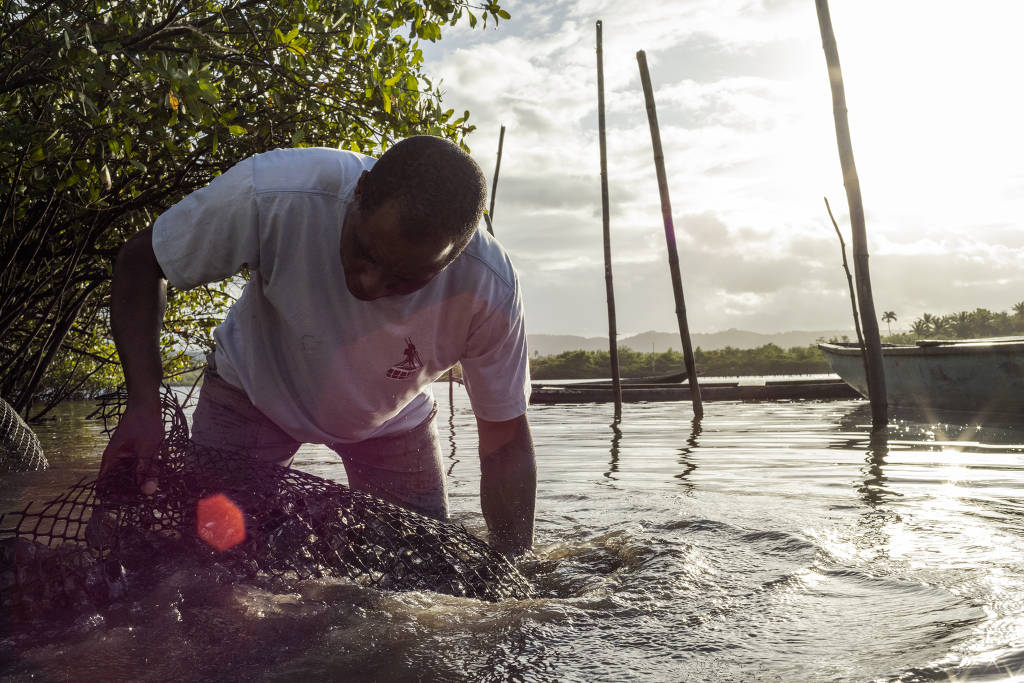 Cultivo de ostra é incentivado como meio de fortalecimento do território quilombola Kaonge, em Cachoeira, na Bahia – Renato Stockler/Folhapress