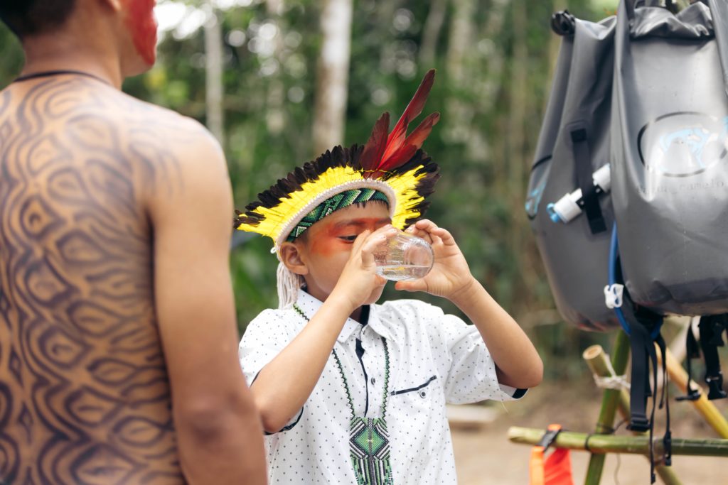 Desde o fim de abril, as enchentes no Rio Grande do Sul impactaram mais de 2 milhões de pessoas em 400 municípios, no que já é a maior tragédia climática da história da região. Organizações variadas têm se mobilizado para tentar mitigar os danos. Entre elas está a startup Água Camelo, que trabalha com mochilas de purificação de água e educação sanitária e já destinou mil kits ao estado, garantindo 2,5 milhões de litros de água potável por dia para cerca de 1 milhão de gaúchos sem acesso a ela. A filtragem usa membrana de fibra oca, que remove bactérias, protozoários e partículas em suspensão, além de microplásticos. A Água Camelo atua em 15 estados, sobretudo no semiárido e na Amazônia. Na foto, de 2020, meninos da etnia yawanawá, no Acre, carregando o kit. Para conhecer melhor a Água Camelo e saber como ajudar, acesse aguacamelo.com.br.